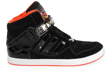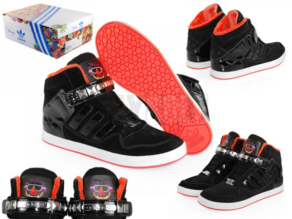 Today, Disney and adidas add to that mix with the adidas Originals adiRise AR 2.0 ‘Animal’. This model combines nubuck and patent leather uppers, furry bright orange sockliner, studded upper strap, and white midsole, all inspired by the Muppets popular character “Animal”.