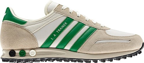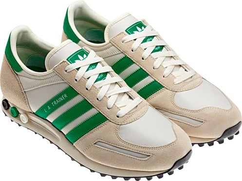 Perhaps the biggest adidas Originals drop of the year so far is the JS Bones– another eye-popping silhouette and colorway that once again pushes the sneaker limits as only Jeremy Scott can. But you always need your training shoes handy also. For that, in case you’d like to once again peg adidas Originals for your shoe source, the line offers two pairs of the L.A. Trainer premium. The two colorways included are black/red/white as well as beige/white/green. Can you pick a favorite colorway from these two?