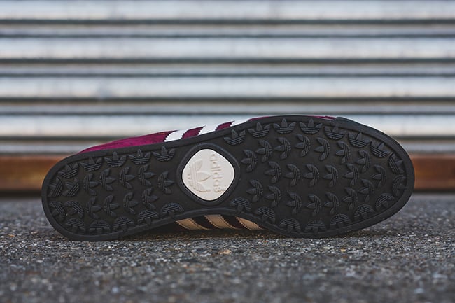 As you can see, this adidas Originals Samoa comes in a clean Maroon, White and Black color scheme. Through the base is the use of Maroon while constructed with suede. The Three Stripes down the side and on the heel is White leather while the same shade covers the midsole. Other details include Black across the outsole and Gold Samoa on t he side.