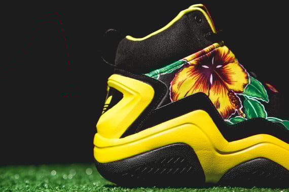 Floral sneakers are really starting to catch fire with sneakers this spring and summer, like the Converse Resofla Floral pack. Ongoing collaborators Jeremy Scott and adidas have teamed up to give us a new floral kick this season. The adidas Originals x Jeremy Scott Prime Skin “Floral” is a mostly black shoe with a bold red and yellow floral print on the midfoot. To accent the floral print, yellow zig zags loom along the midsole, while black takes it’s place on the outsole. Check out some close ups, below! And if you’re interested in copping a pair, head over to Wish now!