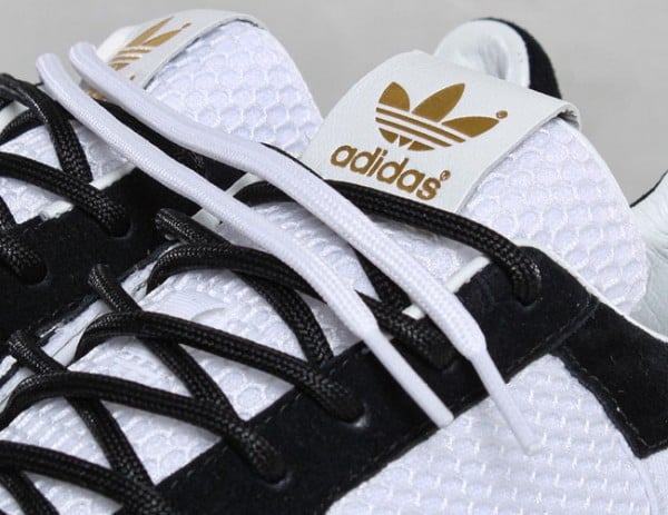 Today, we have more images of the adidas Originals ZX800 DB in white/black/blue. These feature black suede panels, while mesh upper, and light blue and gold accents.