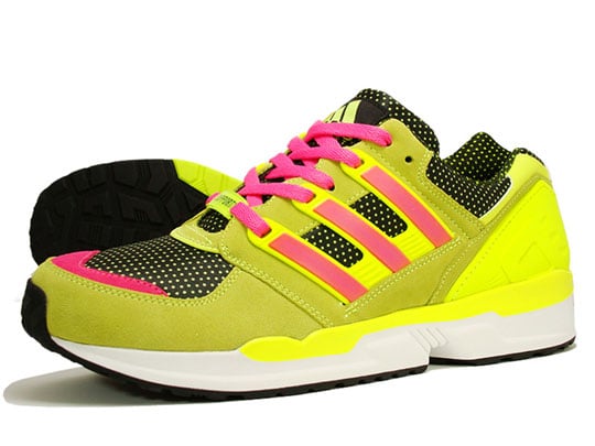 Consisting of two EQT Runners, the Neon Pack falls under Adidas‘ Remix series. Included, are two EQT Runners, neon orange and neon yellow. The orange model is made up of a variety of materials along with black accents and a polka dotted design on the toe and around the ankle. While the neon orange model is a little more subtle than the neon yellow version, it is hit with black and pink accents as well as a similar polka dot pattern. Both are now available at Bingo Runner.