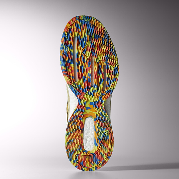 Not many pairs of the adidas RG3 Energy Boost have released and when they do it’s very sporadic. For example, the pair shown recently dropped but no images leaked or warning from the pair. Moving forward, they feature a sand upper with pearl metallic and semi solar yellow accents. The sole uses multiple colors that give them a fruity pebble look.