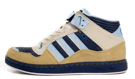 Continuing with their July releases, two new Adidas Roster Mid’s have just released, a beige/navy color-way and the Mark Gonzales Edition. The first Rost Rid is composed of dark blue leather upper surrounded by beige suede.
