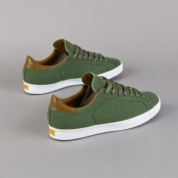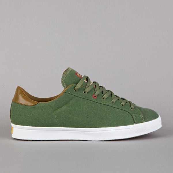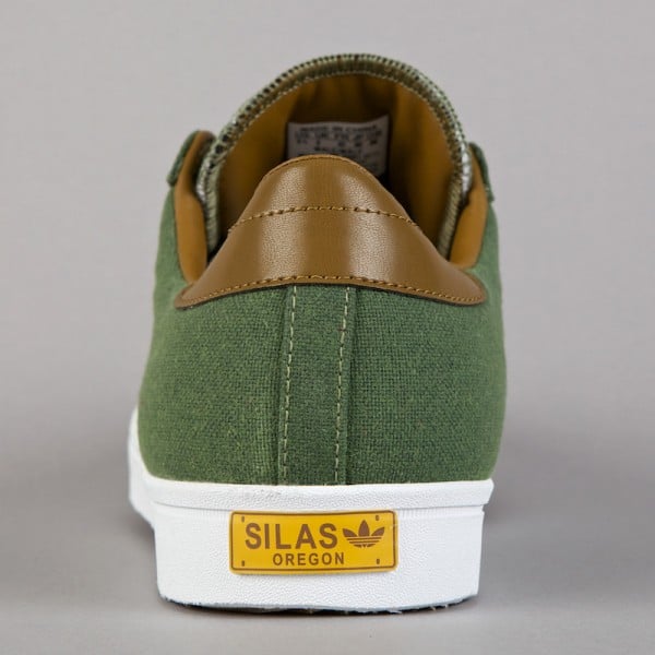 Created for one of the smoothest skaters around, this Rod Laver sports an army green canvas upper alongside a brown leather lining and heel tab. Complete with a white midsole and gum outsole, the shoe sports Silas’ name on the tongue and heel alongside a beaver – a nod to Silas’ home state of Oregon.