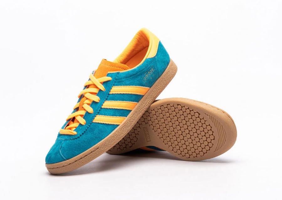 The new adidas silhouette comes with a soft suede upper with striking color combinations such as this Active Teal and Gold Metallic. The Gum sole and the leather lining are among the additional details. The low-profile outsole keeps the look sleek and streamlined.