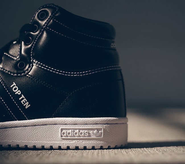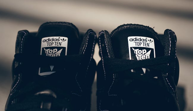 The ‘Black’ adidas Top Ten Hi is now available at adidas retailers with the first location to pop up at is Sneaker Politics. Retail price is set at $90 and you can get a better look by scrolling below.