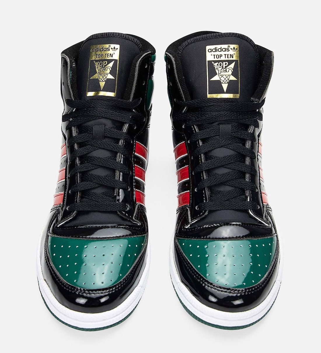 adidas Originals continues to launch new Top Ten Hi color options that resemble Air Jordan 1 color blocking. Next, the pair will come dressed in SoleFlyโs Friends and Family Air Jordan 1 from 2018.