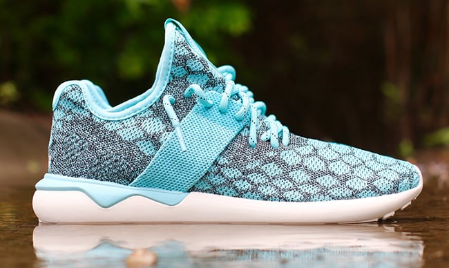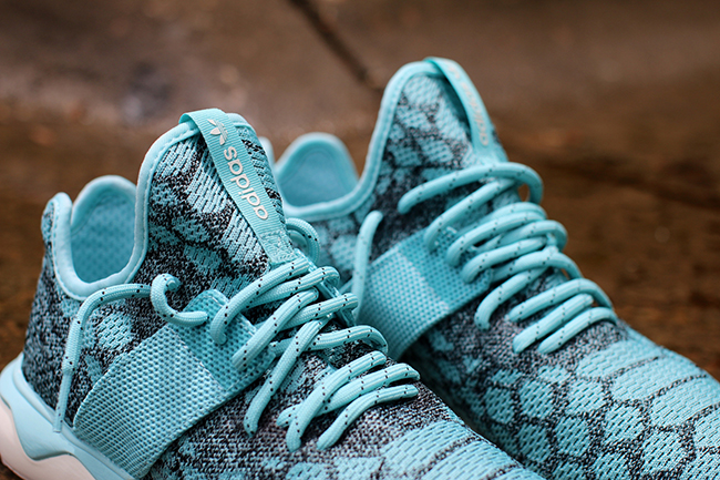 Already becoming a classic, thesis version of the adidas Tubular feature Primeknit material through the uppers which gives us a lighter version of the shoe. Featuring blue spice through the uppers, a reptile pattern is also used. White lands on the branding and on the midsole while minimal hints of black make its way onto the laces.