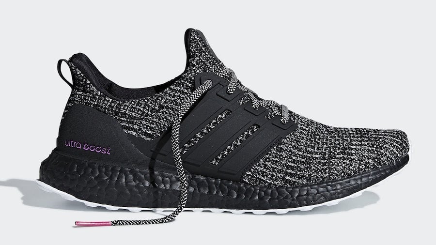 This adidas Ultra Boost comes dressed in a Cloud White, Core Black and Shock Pink color combination. Highlighted with White and Black Primeknit across the upper while matte Black lands on the cage while Pink is used on the Ultra Boost branding. Completing the look is the Pink Breast Cancer ribbon on the heel.