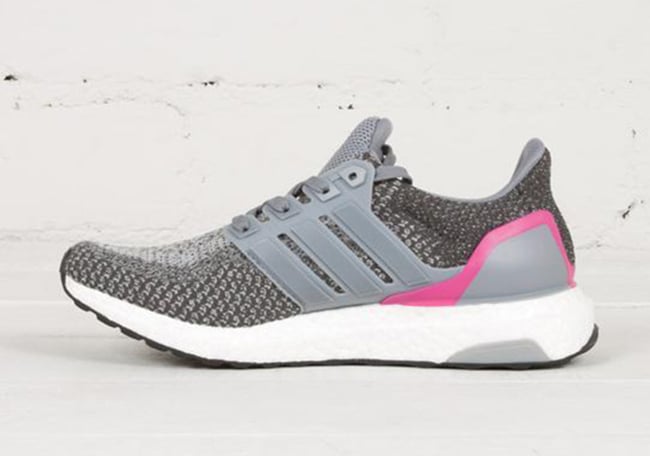 The latest adidas Ultra Boost to release is a Women’s exclusive that is dressed in Grey and Shocking Pink. As you can see, shades of Grey is used through the Primeknit base while also landing on the cage. Outlining the Grey heel cup is the use of Pink. Other details include a White Boost midsole and Black outsole.