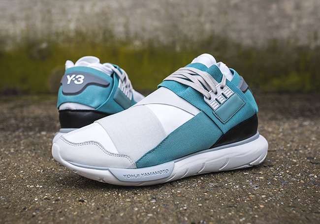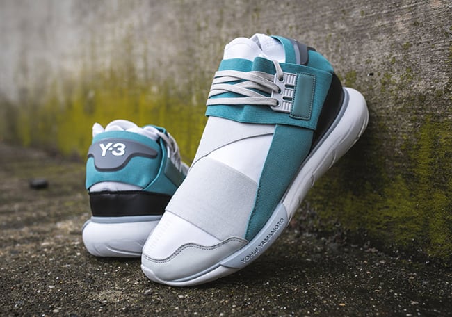 Having a warmer weather vibe, this adidas Y-3 Qasa High features a Crystal White and Vapor Steel color combination. Constructed with your traditional Y-3 setup, they feature an elastic straps and a neoprene bootie. While shades of Grey and White are seen across the top, Teal runs across the sides and heel. Other details include White across the midsole and outsole while Black wraps the heel.