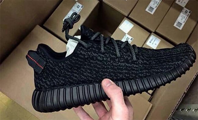 Update: Here is a short video showing how the adidas Yeezy 350 Boost ‘Black’ looks on feet. Also new info has leaked that the shoes will come in half sizes.