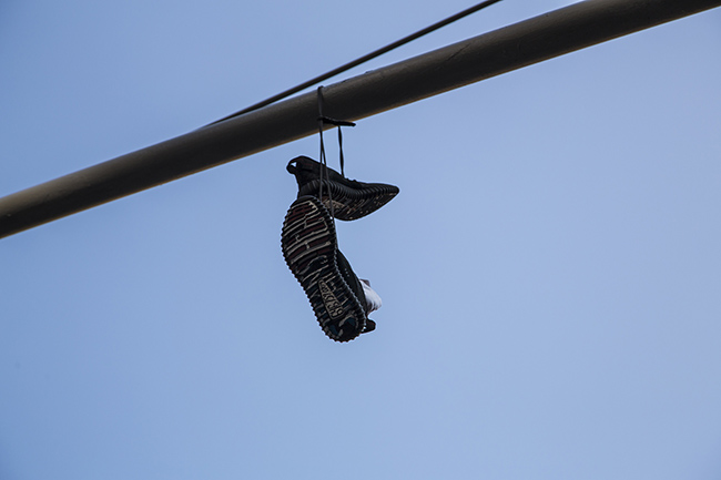 The number he placed on the sole is said to be his personal line, and if you want this pair all you have to do is text him and he will let you know where they are at. It isn’t known at this time if someone already picked them up, but they are hanging from a power liner somewhere in New York. See below for more images of the ‘Kanye 2020’ adidas Yeezy 350 Boost custom below. You can also visit his website to grab the number.