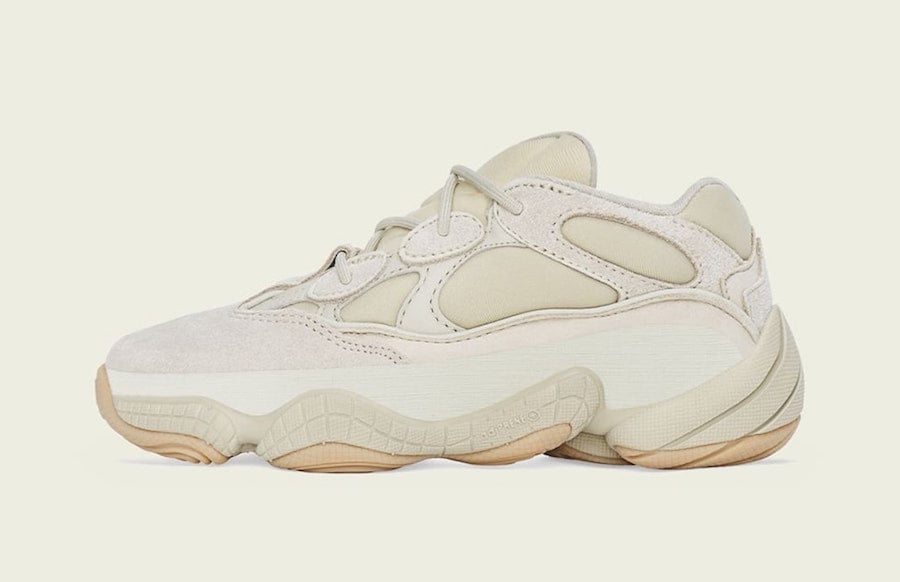 The adidas Yeezy 500 โStoneโ is added to the upcoming Fall 2019 Yeezy releases which joins the โSoft Visionโ and โBone Whiteโ colorways.