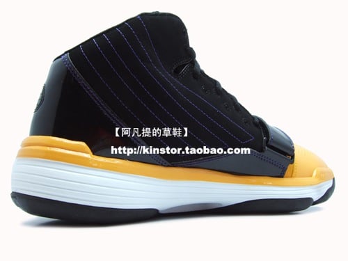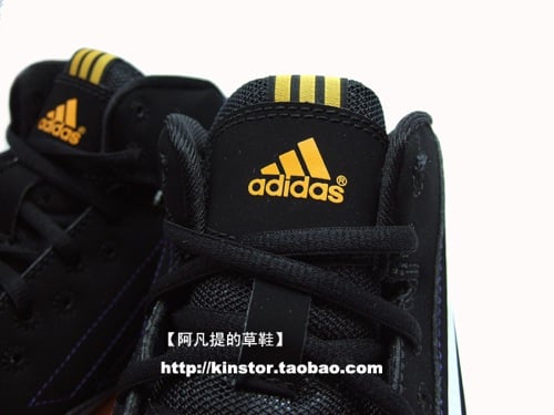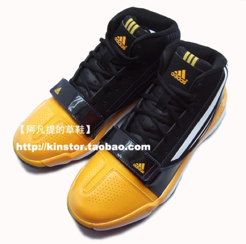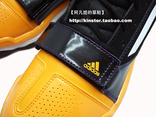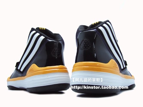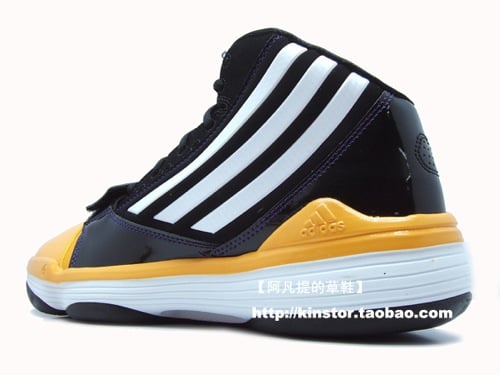 A recent release in the adidas Top Ten high with black crocodile-like material definitely got the attention of several sneakerheads who liked the simple colorway with material detailing. Now, adidas is showing us something new for 2010. Pictured here is the adidas Young Guns silhouette, which will be reportedly introduced in the spring. This sneaker comes with a patent leather upper and a strap that drapes over the lower portion of the shoe laces area. Furthermore, you can also see a sort of revolutionized version of the adidas three stripes, which come in a more swooping trajectory. This particular pair sports a predominantly black base, with a white midsole and both purple and yellow accents. Don’t be surprised to see these on the feet of some NBA athletes under contract with adidas- a.k.a. NOT Gilbert Arenas. What are your thoughts on this new adidas design?