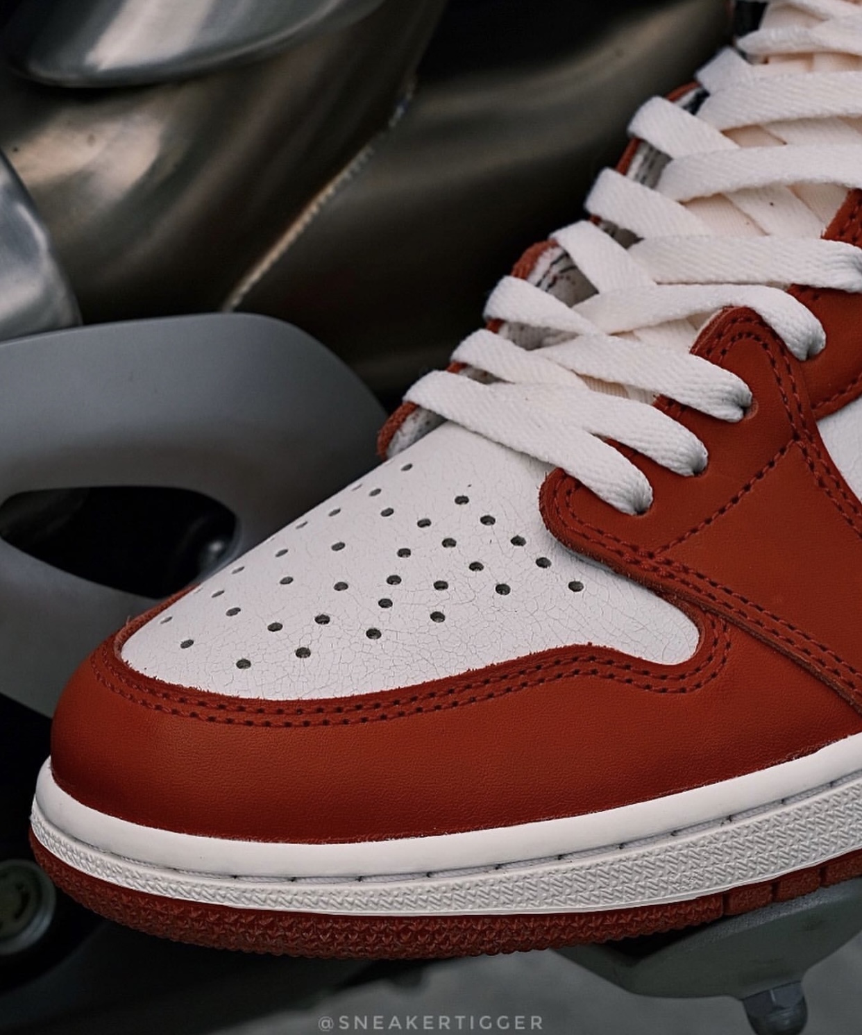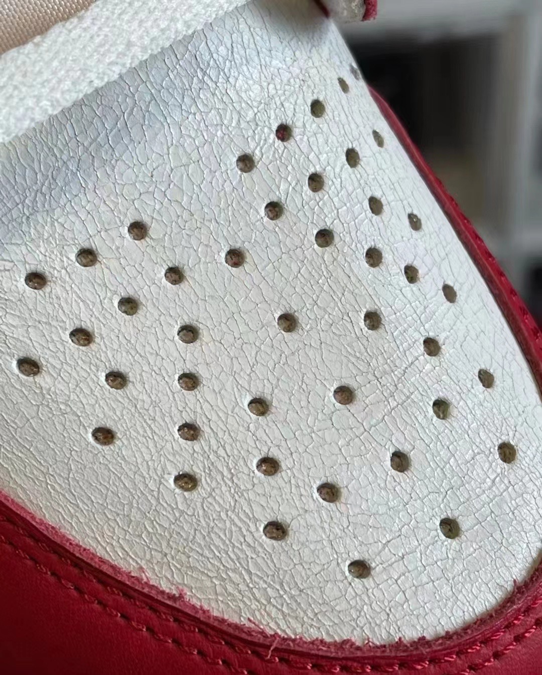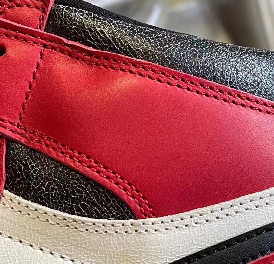 Update (6/12): Additional photos of the Air Jordan 1 High OG โChicago Reimaginedโ have arrived that gives us a better look at the cracked leather.