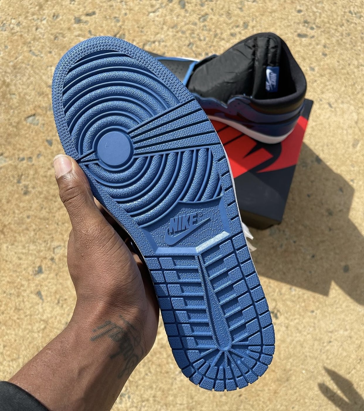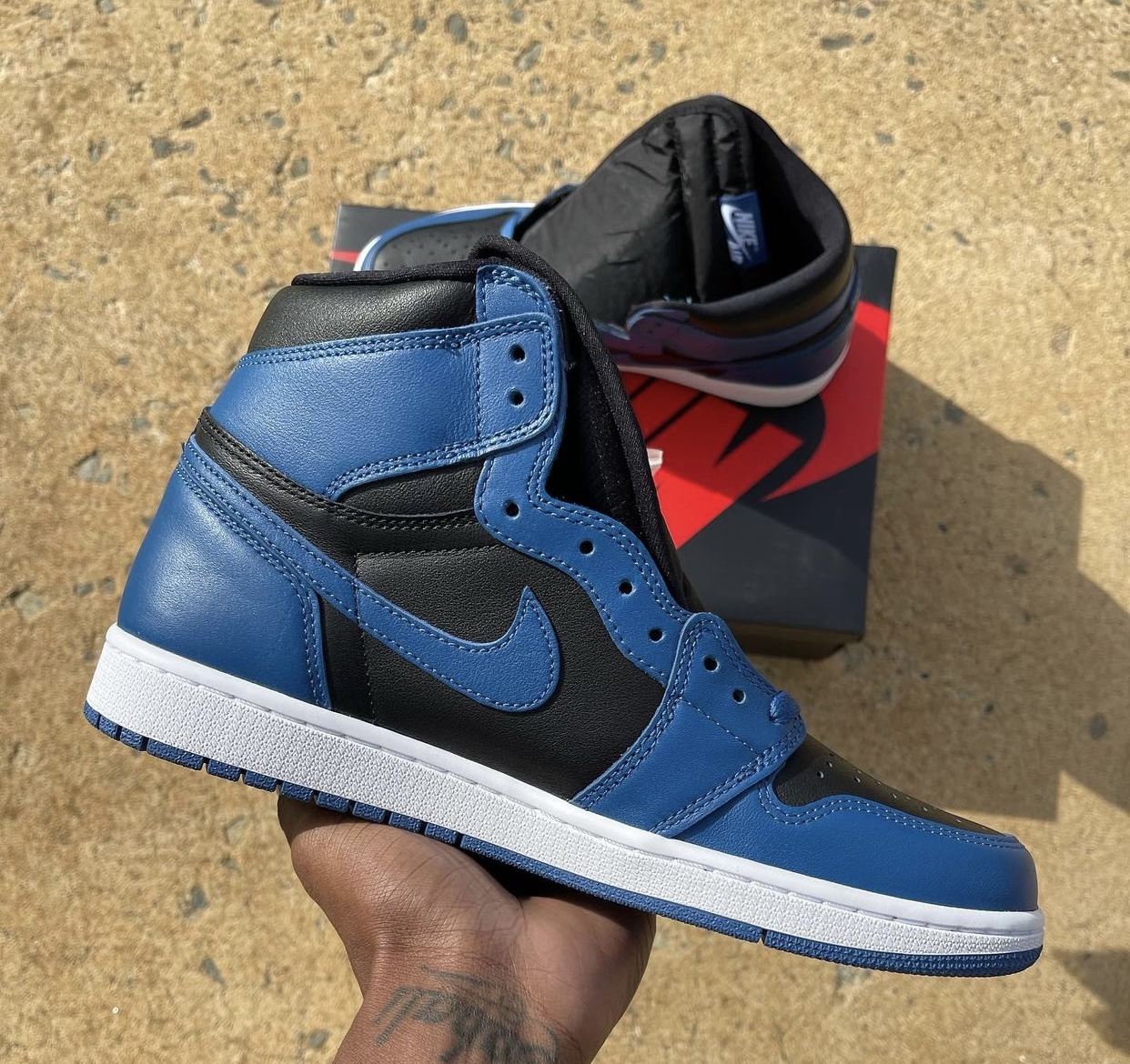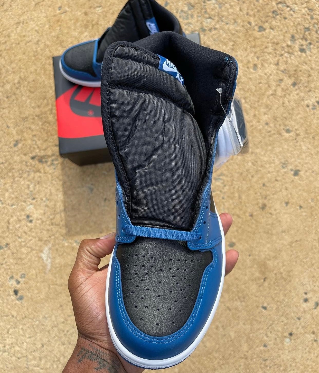 Update (9/4): Another look at the ‘Marina Blue’ Air Jordan 1 via fxxkvlogvi. Also, we have a comparison with the ‘Royal’ pair.