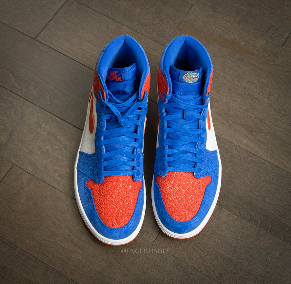 Recently we previewed the Oklahoma Sooners and Michigan Wolverines Air Jordan 1 PEs and now the Florida Gators football team received their own version.