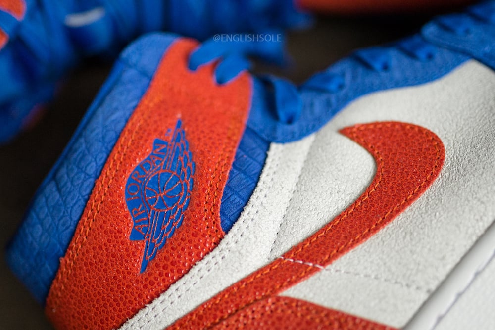 Looking closer this Air Jordan 1 comes highlighted with pebbled leather on the toe, heel and Swoosh logo which utilizes Orange while alligator skin lands in Blue on the overlays and ankle. On the tongue branding we have the Gators logo while White covers the midsole and Orange is used across the rubber outsole which completes the look.