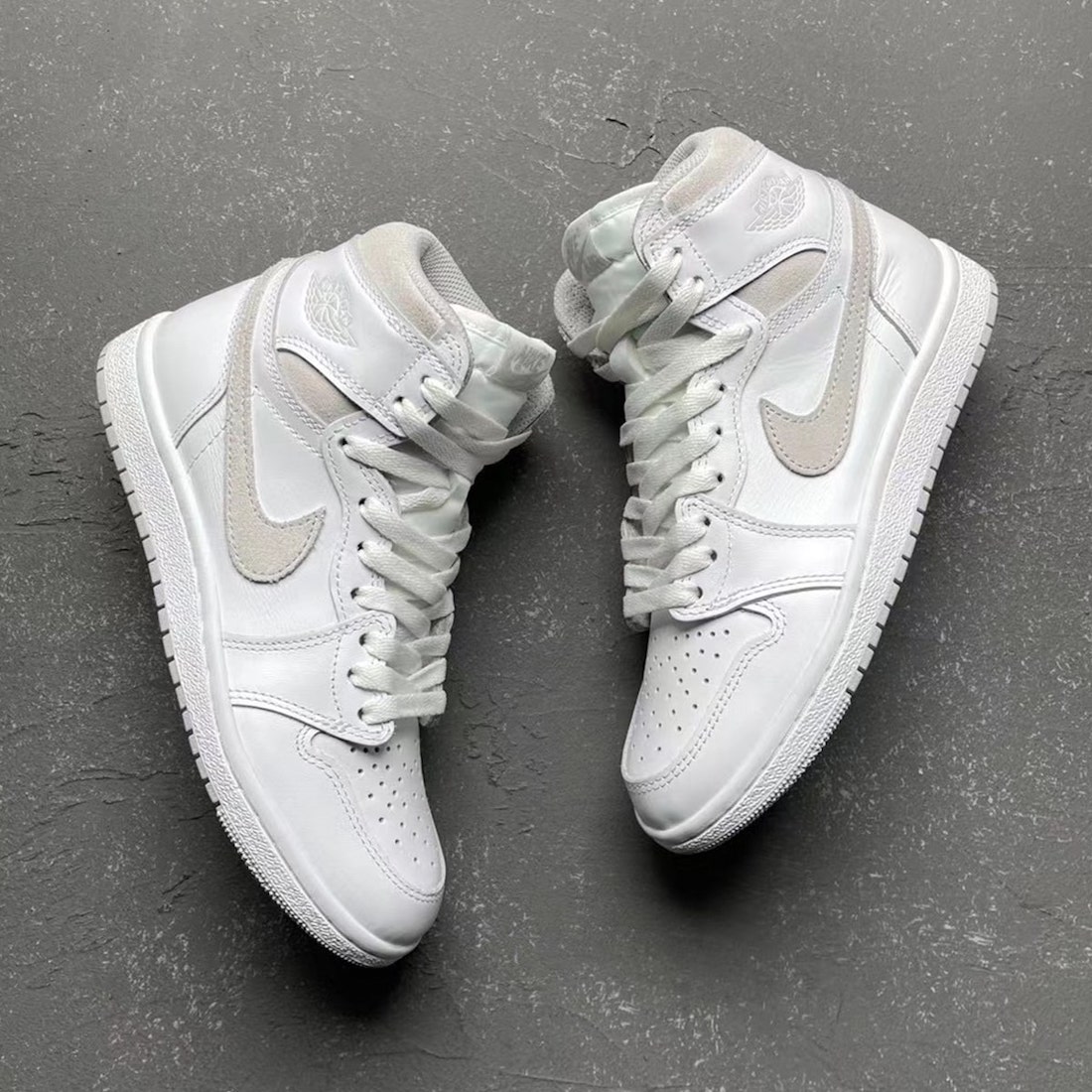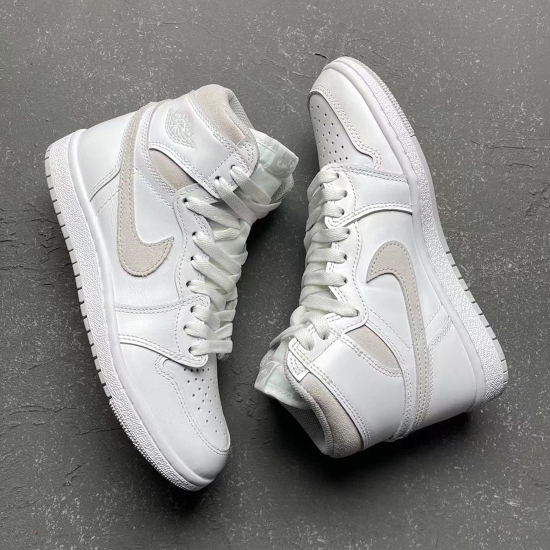 This Air Jordan 1 comes dressed in a White and Neutral Grey color combination. Although images have yet to leak, they are expected to resemble the original release, including White leather throughout the uppers. At the same time, Grey lands on the Swoosh, ankle, Wings, and tongue logo. They will also come in the โ85 build, which means that the overall look and feel will mimic the 1985 pair.