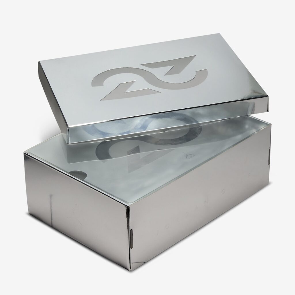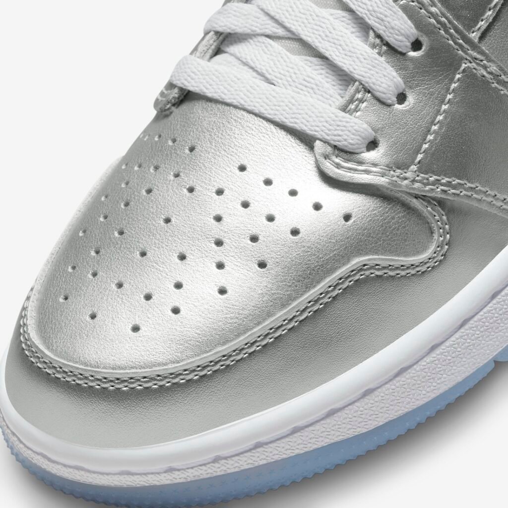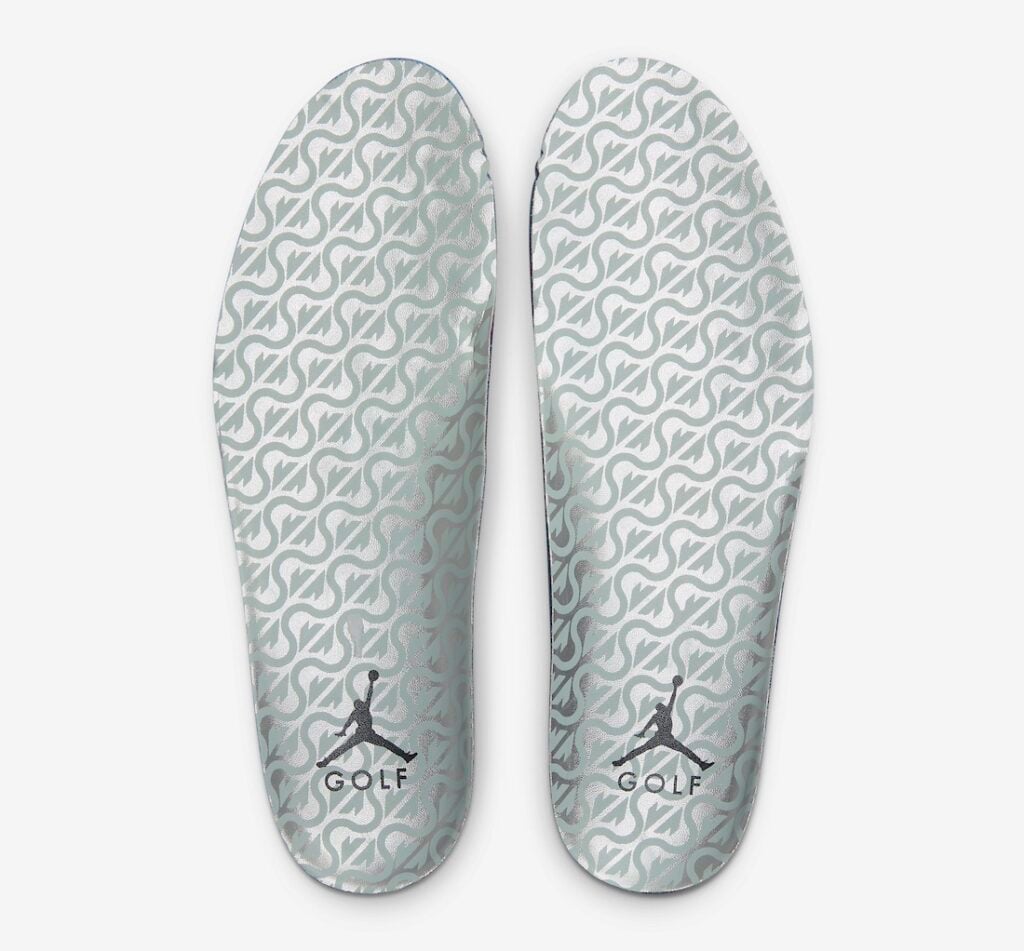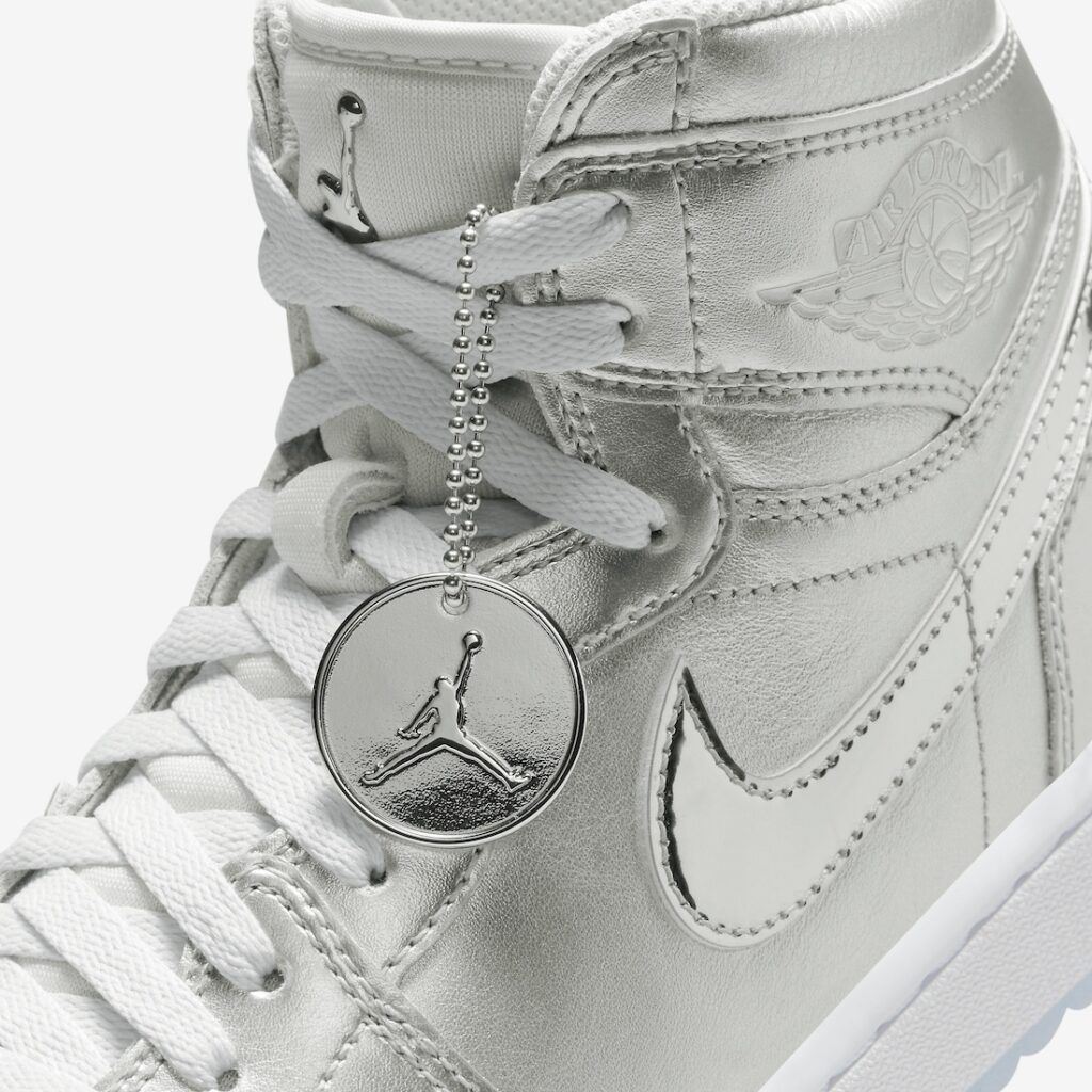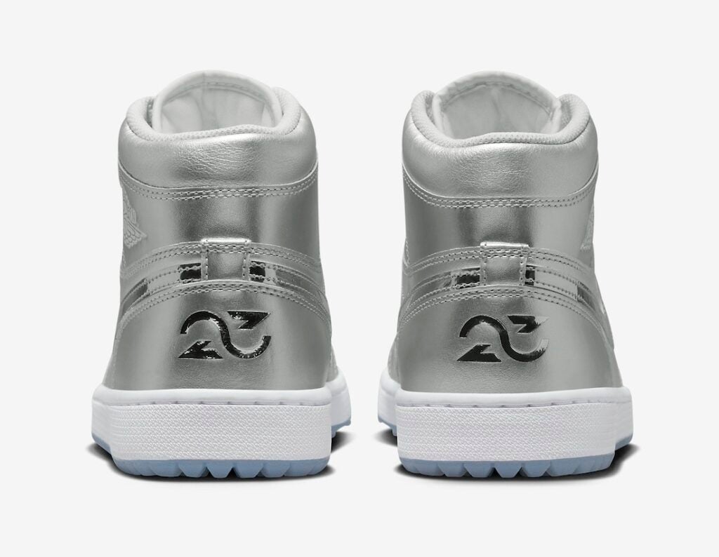 Highlighted in a Metallic Silver, Photon Dust, and White color combination. Utilizing Metallic Silver on the upper and is constructed with leather. The signature perforations land on the toe box for breathability, while Photon Dust mesh lands on the tongues and liner. Adding to the reflective theme, we have Chrome across the Swoosh logos. On the insoles, we have a Jumpman Golf logo and the number 23 repeated. Other details include a White midsole and a translucent golf rubber outsole.