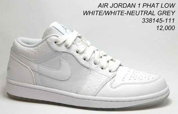 The Air Jordan I (1) has already been released in a plethora of colorways this year, but it seems as though Jordan Brand will continue to dish out new styles of their first numbered model. This time around, the sneaker comes in a clean white on white colorway with neutral grey accents. A couple key features of this colorway are the highly popular clear sole and the unique textured leather. Jordan Brand has also implemented synthetic mesh onto the mid-panel and tongue. The Air Jordan 1 (I) Phat Low – White/White-Neutral Grey is expected to release in the upcoming months, so be sure to stay tuned for updates.