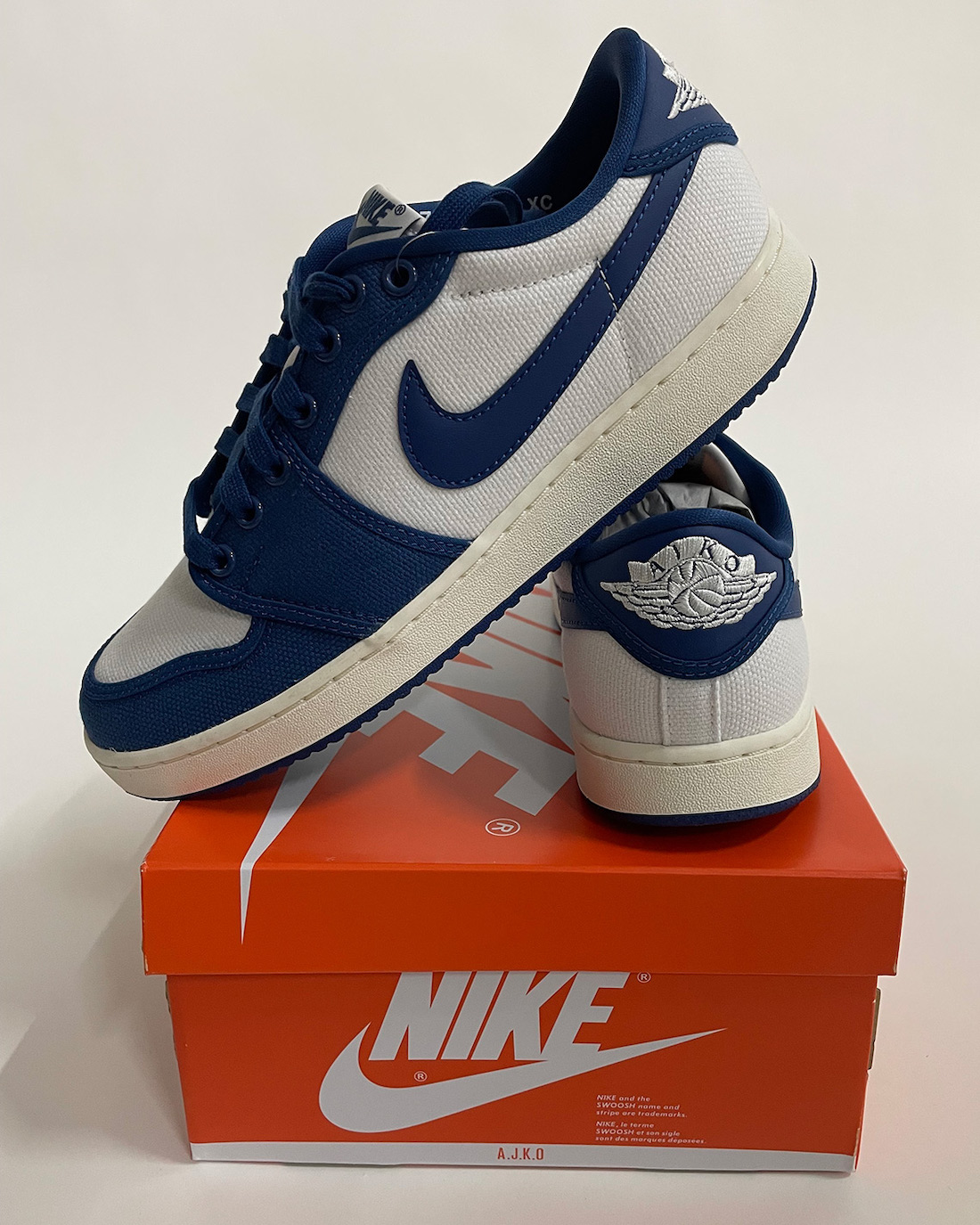 This Air Jordan 1 KO Low comes dressed in a White, Dark Royal Blue, and Sail color combination. The overall look resembles the โKentuckyโ colors originally placed on the Nike Dunk โBe True To Your Schoolโ Pack. Constructed with canvas throughout with White and Royal Blue. Next, Royal nubuck adorns the Swoosh logos and heel overlays, while Nike branding lands on the tongue labels and insoles. White fills in the embroidered Wings on the heels and the same shade covers the nylon tongues. Other details include the size placed on the liner, an aged midsole, and a Royal Blue rubber outsole.