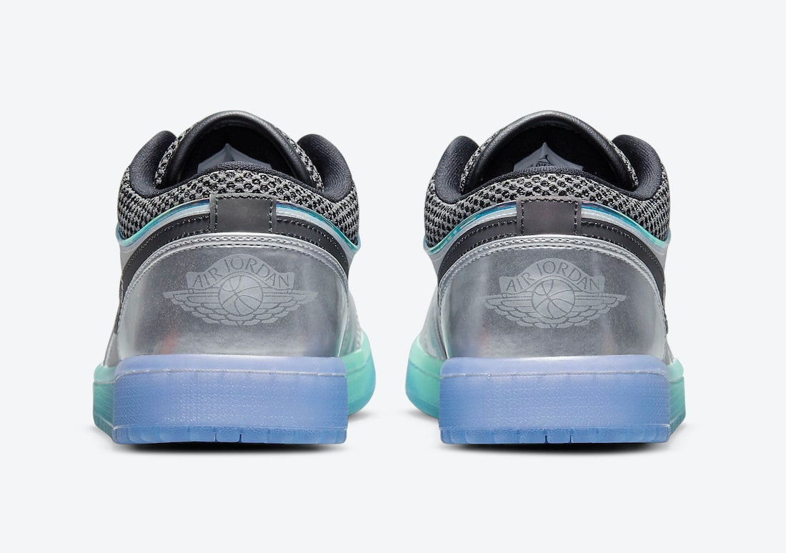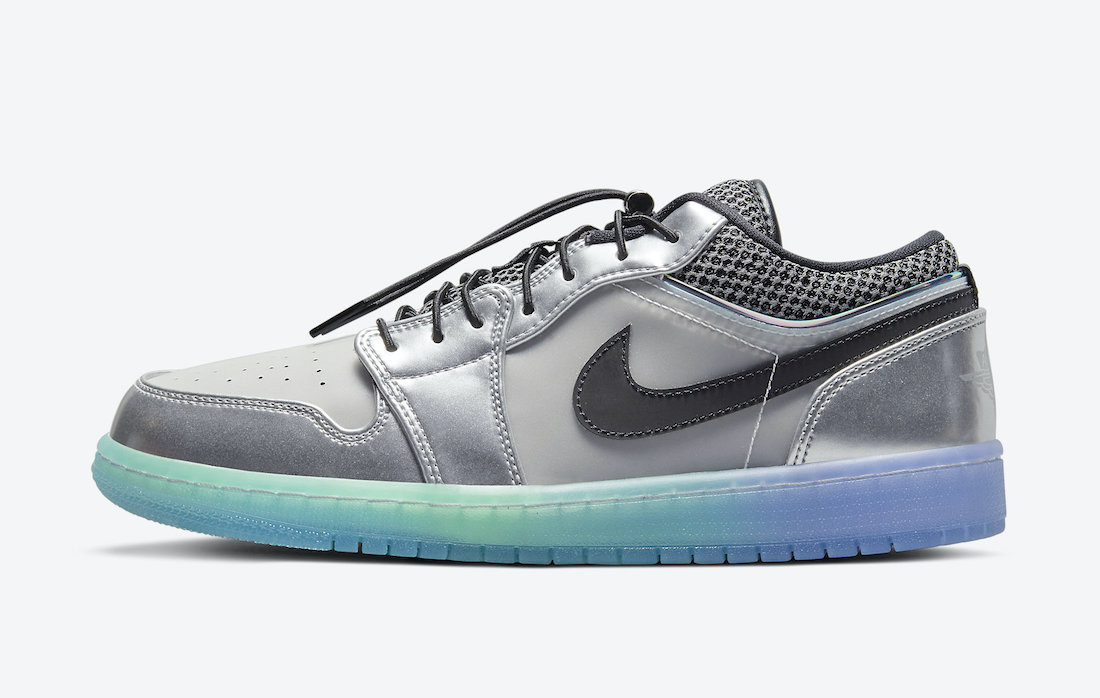 Going over the pair, this low-top Air Jordan 1 comes constructed with a semi-translucent TPU upper while Metallic Silver appears on the overlays around the toe, eyestay, and wraps the heel. Next, Dark Grey mesh adorns the ankle collar and tongue with a toggle lacing system. Following, reflective accents the Swoosh while a gradient midsole and rubber outsole finish the look.
