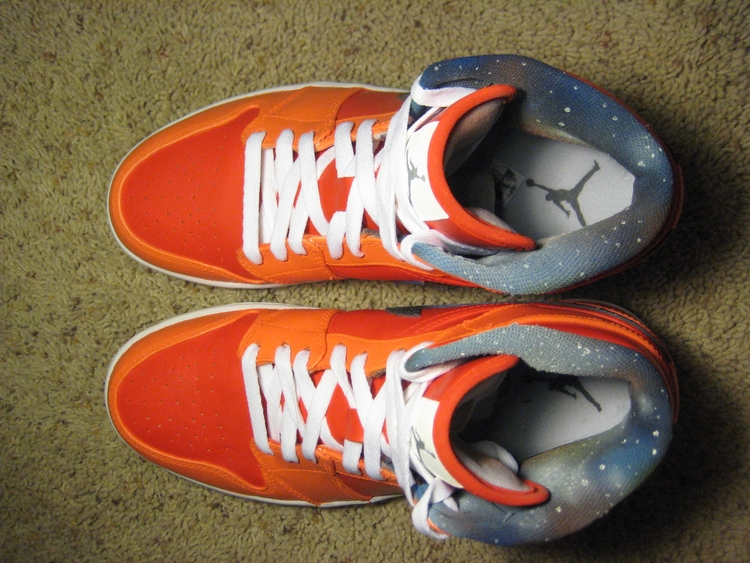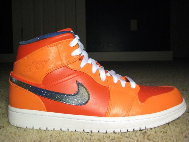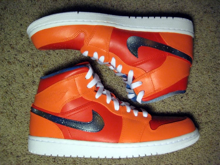 What takes inspiration from the 2012 Nike LeBron 9 “All-Star/Big Bang”, this Air Jordan 1 custom displays a team orange and total orange combination leather upper, white midsole and lace set, and galaxy-inspired Swoosh branding and matching inner lining. Would these have been a big hit had they seen a release alongside other All-Star releases last year?