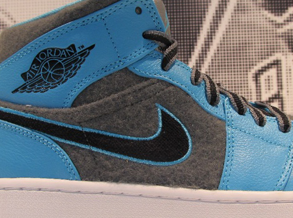 The Air Jordan 1 Mid has definitely seen its fair share of colorways grace its silhouette in 2013. Adding to the growing list is this “Grey Felt” pair which combines a University Blue synthetic leather upper with grey felt-like panels. Throw an embroidered Swoosh and ribbon laces into the fold and we definitely have a pairing of materials that is truly unique. Read on to check out an additional look at these kicks and be sure to keep checking with SneakerFiles to find out when these will release.