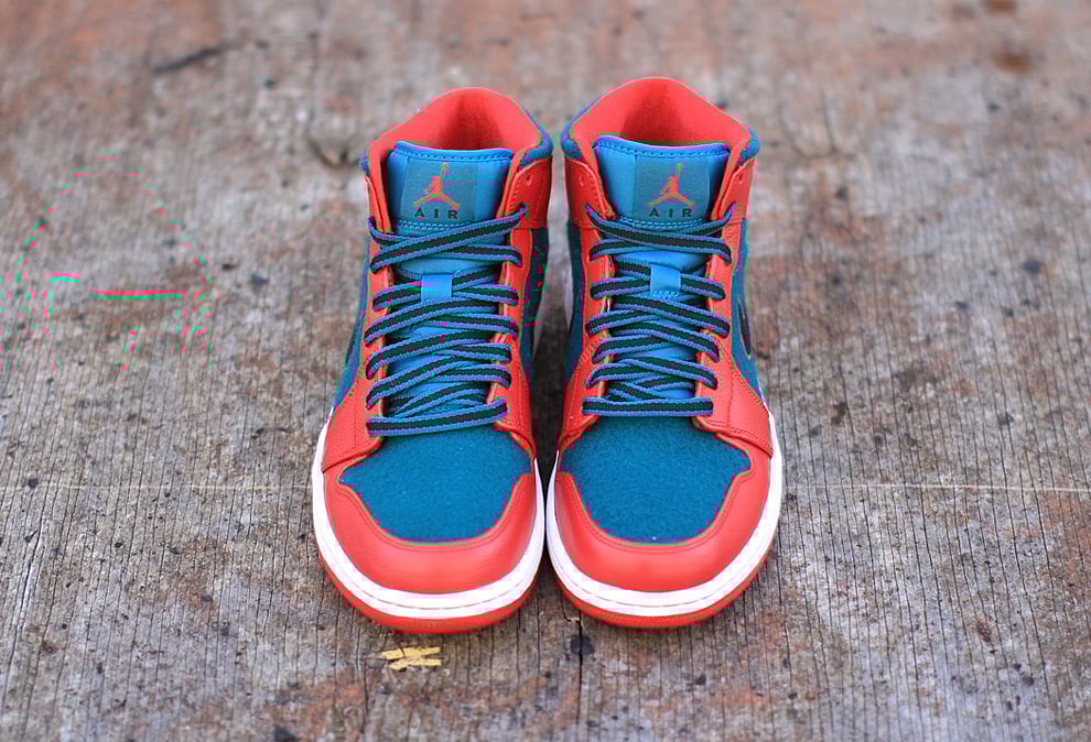 Introduced just two days ago, new images give us a better look at its gym red, black, and dark sea colorway. What’s most appealing about this Air Jordan 1 however is its wool underlays – a perfect ode to Fall.