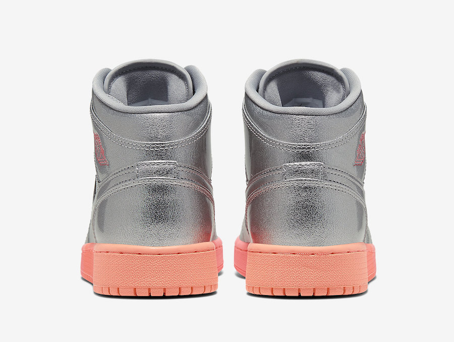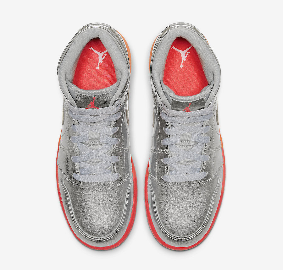 This grade school exclusive comes dressed in a Metallic Silver, Racer Pink, Wolf Grey and Hot Punch color combination. This mid-top Air Jordan 1 features Silver across the entire upper while bright shades sectioned off on the midsole. Other details includes Pink on the Wings logo and Jumpman on the tongue while Punch covers the insoles.