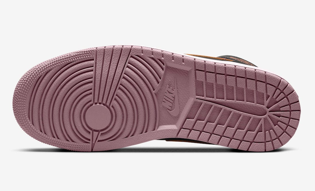 This Air Jordan 1 Mid utilizes a Black, Sky J Mauve, Sky J Orange, and White color combination. Constructed with the usual leather throughout and perforations across the toe box. Mesh tongues will also help the breathability. Utilizing Black throughout with Mauve detailing on the toe box, laces, collar, liner, the Jumpman on the insoles, and rubber outsole. Orange graces the Jumpman on the tongues labels, Wings logo, and Swooshes across the panels. Finishing the look is a White midsole.