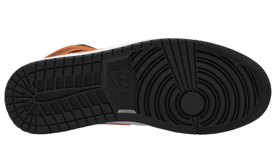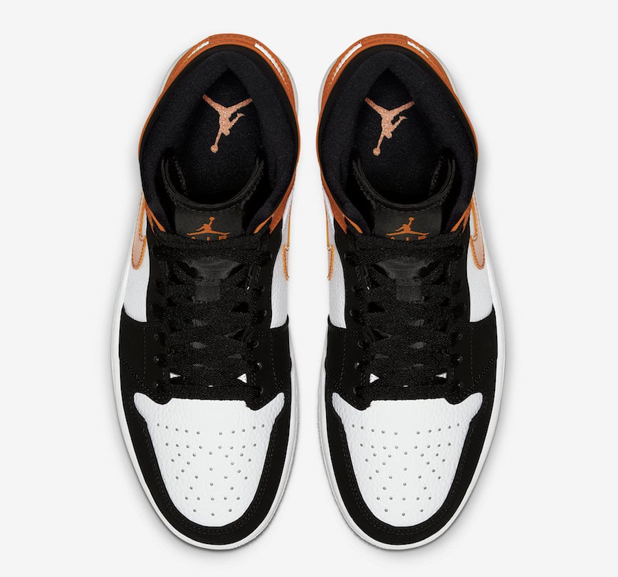 This mid-top Air Jordan 1 comes dressed in a Black, Starfish and White color combination. Constructed with Black nubuck on the overlays, White leather covers the panels and toe box. Starfish, a shade of Orange lands on the leather overlays around the heel and Swoosh. Other details includes a White midsole and Black rubber outsole.