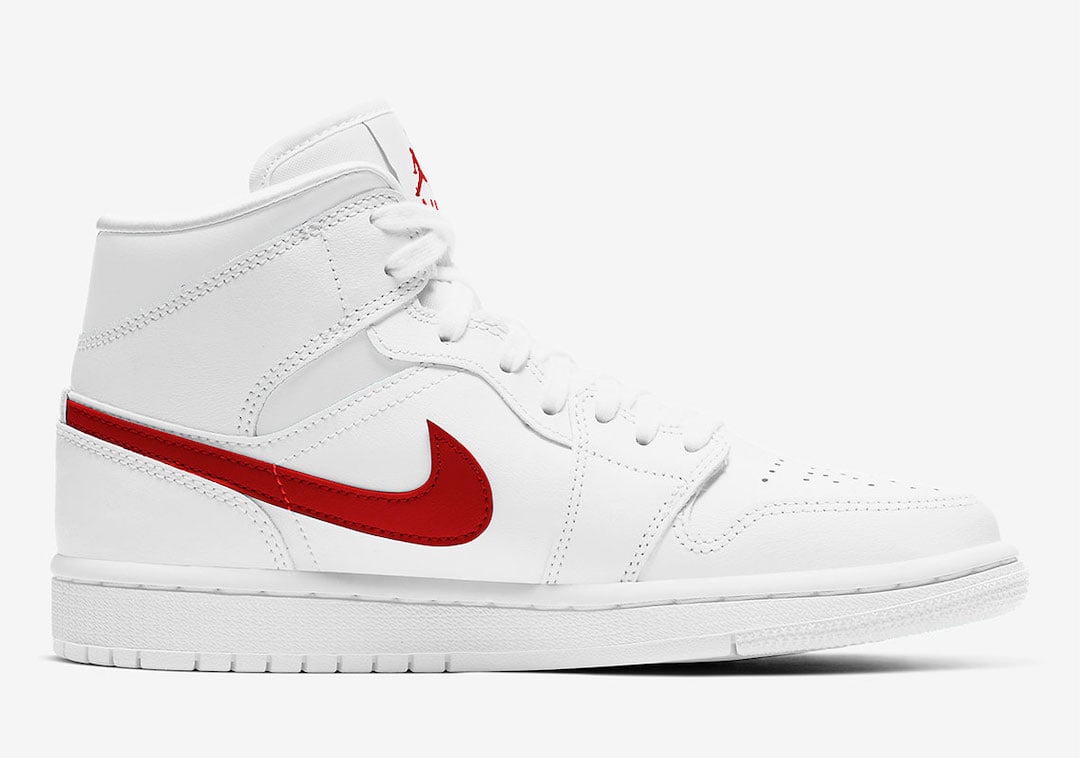Jordan Brand will soon drop another Air Jordan 1 Mid which comes dressed in a simple and clean White and Red and will debut in womenโs sizing.
