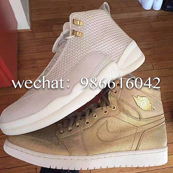 Here is your first look at the Gold Air Jordan 1 Pinnacle. The uppers feature gold with a safari overlay and what is said to be the use of 24K gold on the Wings logo and tongue plate. From these image it appears the only other shade used is an off white through the midsole.