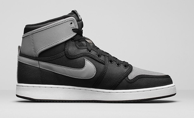Just like the Jordan 1, the AJKO edition comes in black, shadow grey and white. The paneling will use a black canvas while the same material is used on the toe box but this time in grey. The brand has also added more grey in leather on the swoosh and around the collar. Other details are a white midsole and AJKO Wings branding.
