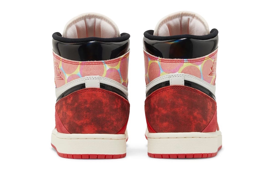 This Air Jordan 1 features a University Red, Black, and White color combination which is inspired by Miles Moralesโ Spider-Man suit. Utilizing geometrical shapes that pay tribute to Miles traveling through the Multi-Verse while dressed in a โChicagoโ color blocking. Also, the pair will be available in full family sizing.