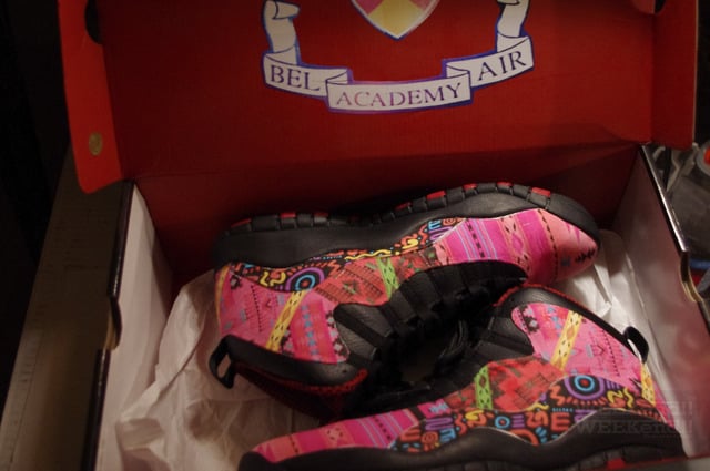Reconstructed from the Air Jordan x (10) “Chicago” that released back in January, this “Fresh Prince of Bel Air” custom features a nostalgic colorway and native inspired print that bring us back in time to the good ol’ days of the show. The last time we saw a silhouette pay homage to the series was with the John Wall Reebok ZigEncore “Fresh Prince of Bel Air” PE that released at a run of only 100 pairs earlier this year. How does this latest model compare? Looking a bit more closely, you can view whimsical designs worked around the shoe’s upper, custom Paisley print inspired insoles, Fresh Prince logos, and a custom “Bel Air Academy” box.