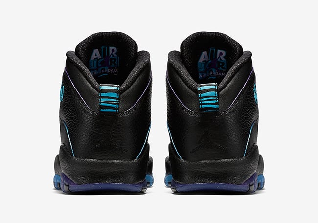 Stopping in China, the Shanghai edition of the Air Jordan 10 will feature a Black upper along with tumbled leather and synthetic materials. Following will be accents of Purple and Teal which gives this pair some added pop which also gradients through the outsole. In addition, Purple and Teal land on the leather cuts. Completing the look is ‘HAI’ embroidered by the collar in Teal which normally would feature either the 23 or 45.