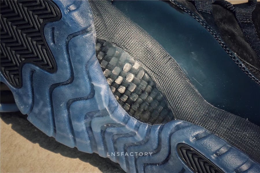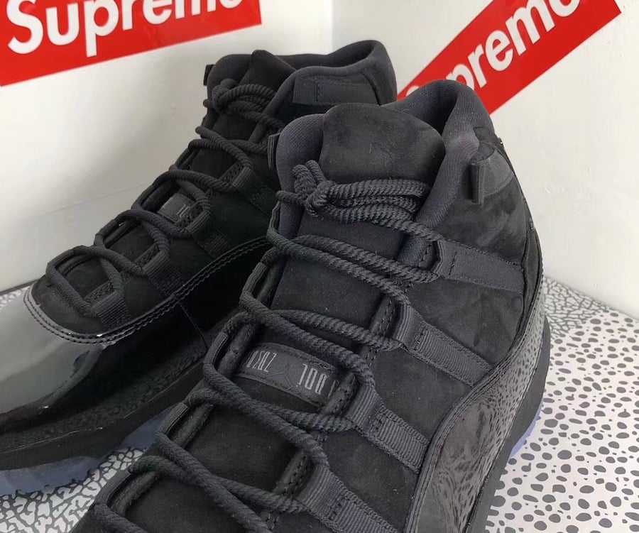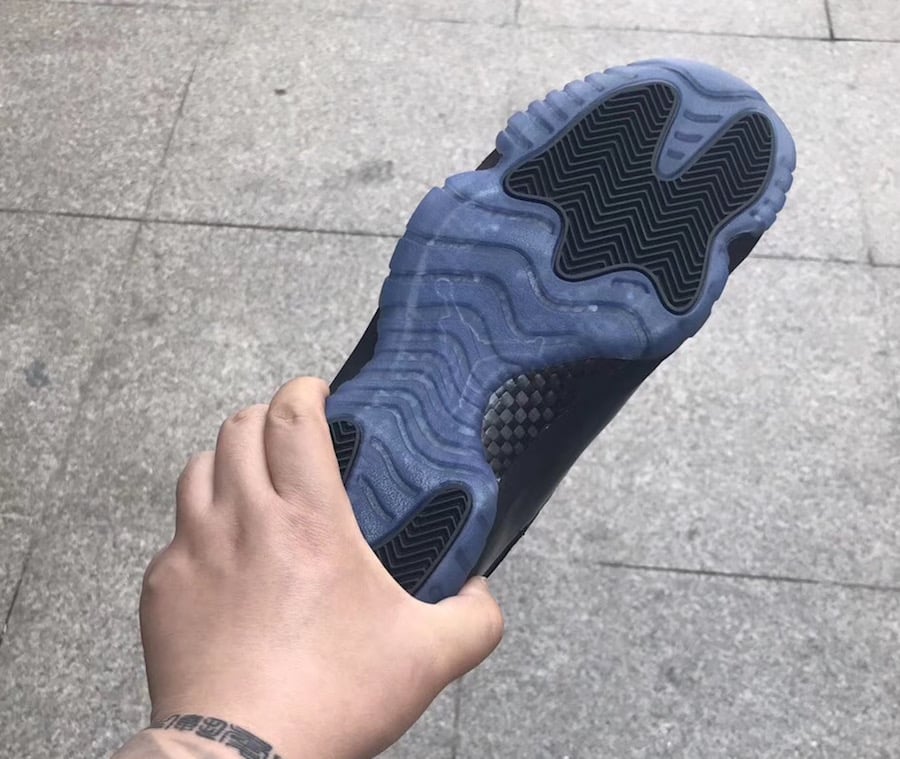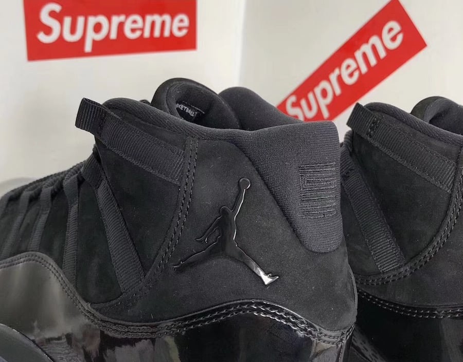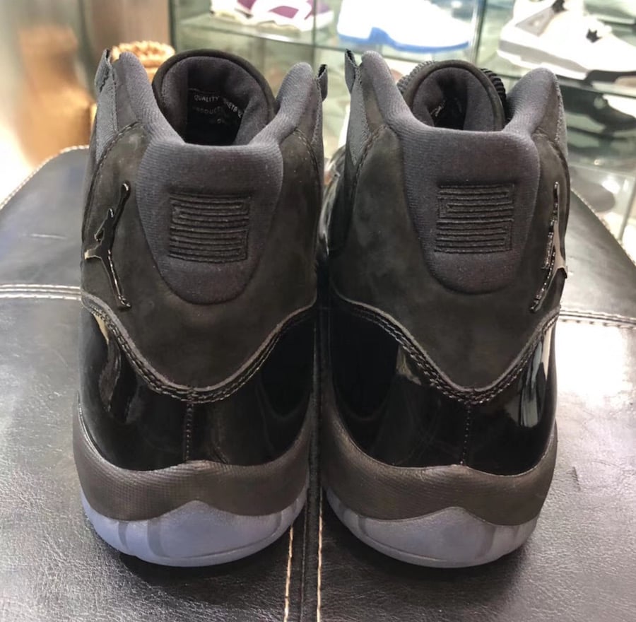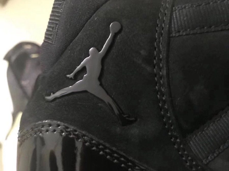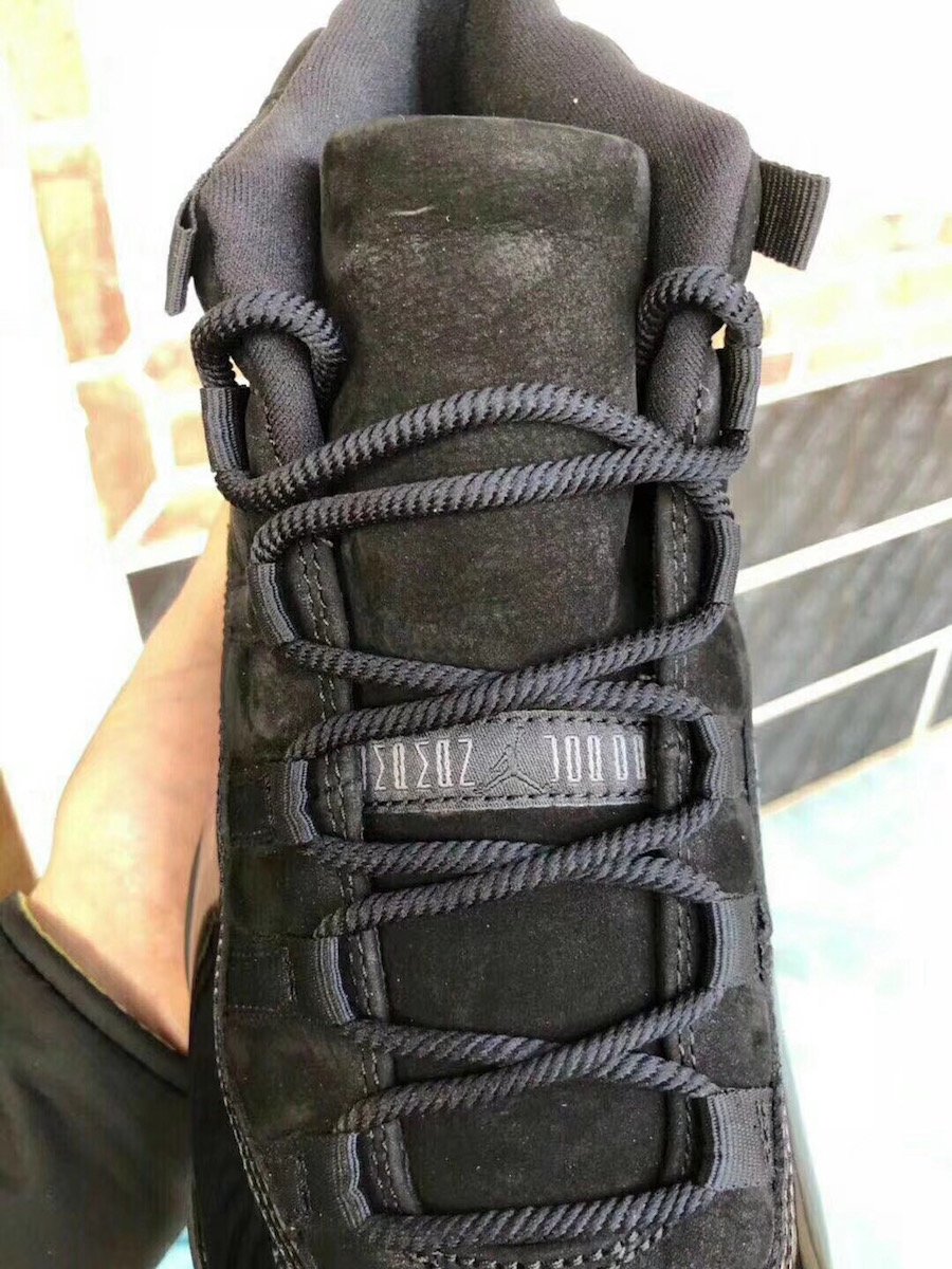 As you can see this Air Jordan 11 features a Triple Black color theme. Instead of using mesh on the upper, Jordan Brand has swapped it out with suede. In addition we have a higher cut patent leather which is also done in Black. Aside from the all Black takeover, the look is then completed with a Blue tinted outsole.