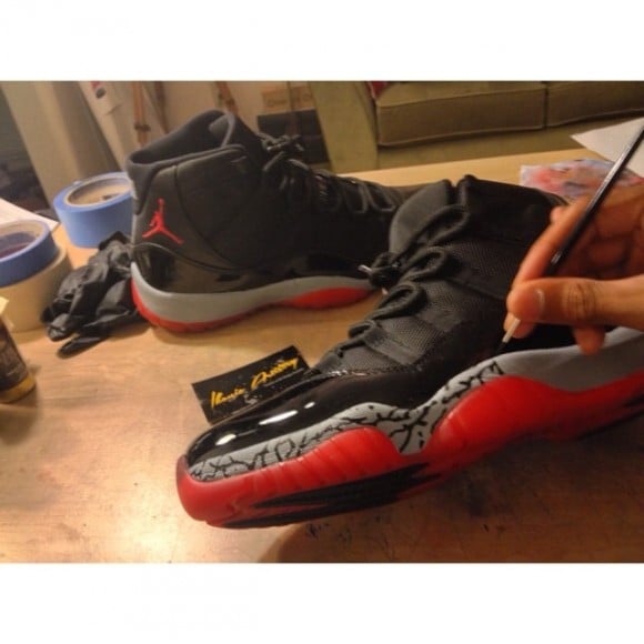 We’ve got a good look at a nice spin Ikonic Artistry did with the AJ11 ‘Breds,’ using a classic Jordan Brand design staple; the elephant print.