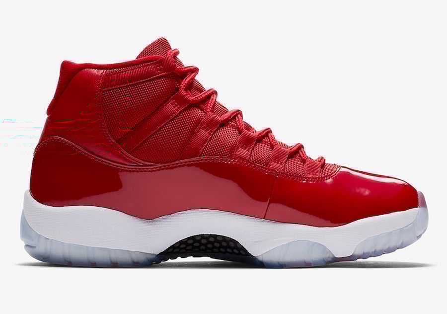 Looking closer, this Air Jordan 11 comes dressed in a Gym Red, White and Black color combination. The entire uppers are dressed in Red which includes the leather, mesh and patent leather. Following we have Black on the Jumpman and on the heel. Other details includes White on the midsole and a translucent outsole.