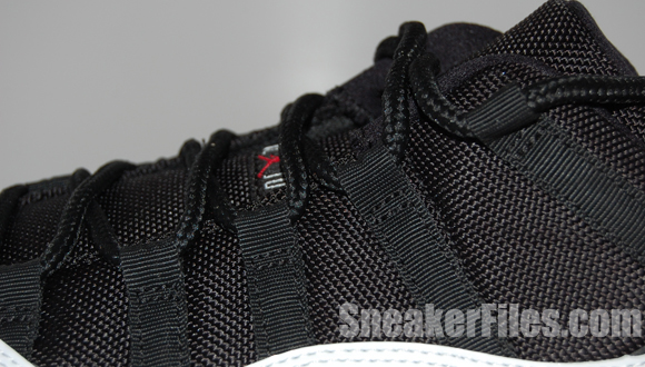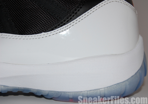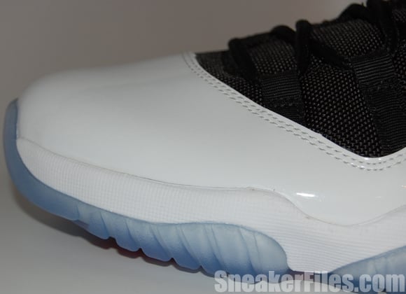 When images first hit the net, many dubbed this Jordan XI Low “Reverse Concords”. But we should note that Jordan Brand has not placed in concord (purple) on the shoe, but replaced it with true red.