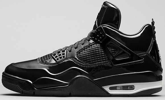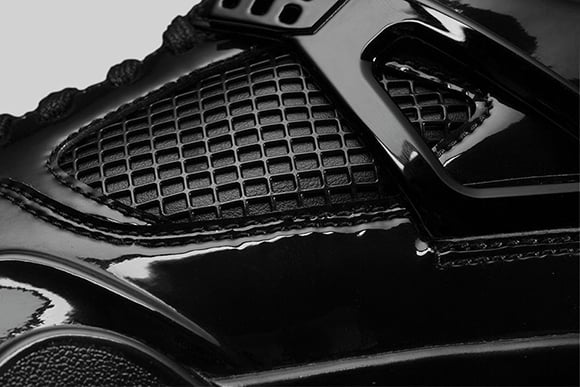 Dressed in predominate black, the majority of the uppers are dressed in patent leather. Just along the midsole by the air unit is white which doesn’t allow for a perfect blackout theme.