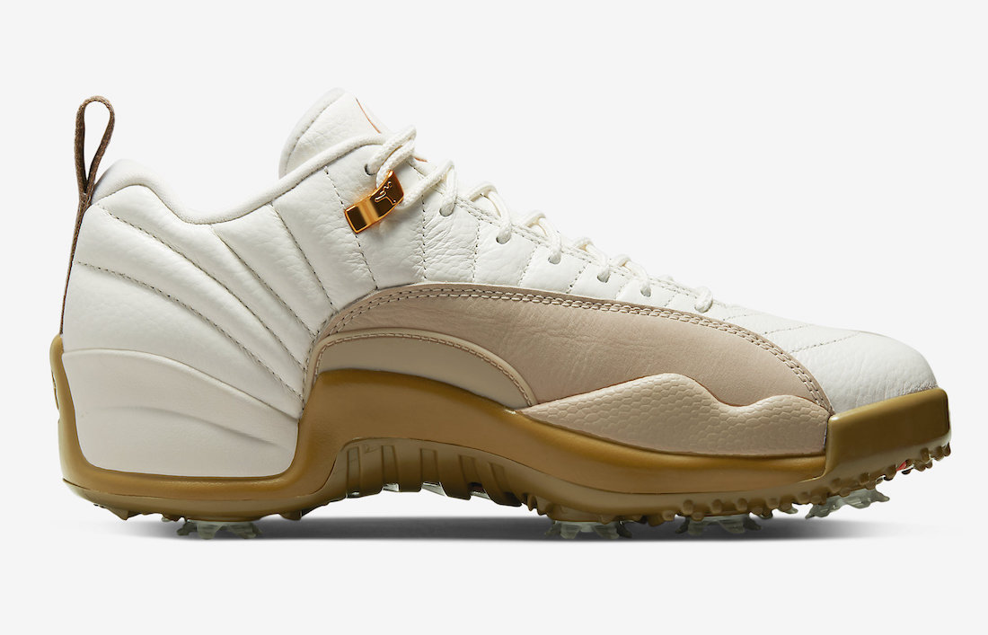 This golf iteration of the Air Jordan 12 Low comes dressed in a Sail, Dark Driftwood, Rattan, and Black color combination. Utilizing White leather on the base with suede across the mudguard and overlays. Next, we have โGolf For The Love of 18โ on the heel tabs. Other details include a Brown hue on the outsole with removable spikes.