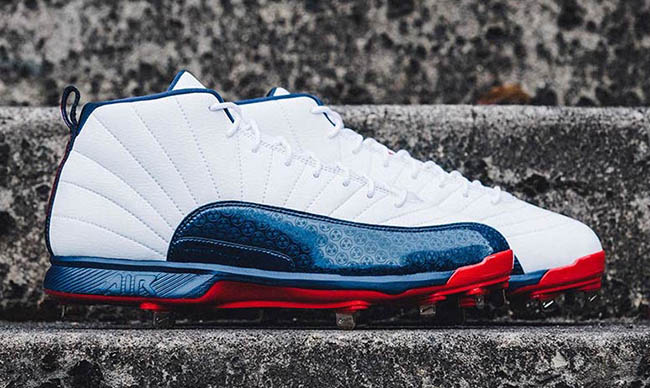 Select Major League Baseball Jordan Brand athletes will lace up the Air Jordan 12 cleats for the new season. Some of those players include Dellin Betances, Mookie Betts, David Price, CC Sabathia, Dexter Fowler and Gio Gonzalez. Each pair consists of colors that best represent the team while constructed with patent leather, suede and leather. In addition, each will have special detailing, for example one pair has skittles on the insoles.