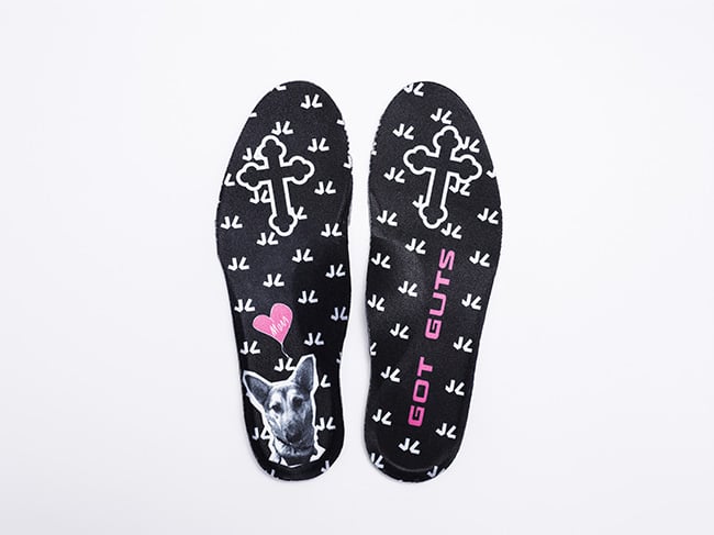 For 2015, John Charles (age 11) was picked to design the Air Jordan 13 and was diagnosed with Crohnโs disease. As a fan of soccer, his number is used on the 13s as well as a nod to his talent at swallowing seven pills at once and a cartoon kid with a raised brow. On the sockliner is John’s twin brother Jonah, his German shepherd Tegan and an Egyptian pyramid. If he could travel anywhere in the world it would be Egypt. A reference to John’s favorite food, Chicken and Jo-Jos is placed on the lace tips. Flipping the shoe over, the outsole will feature the word ‘Crohnโs’ and with every step he want’s to stomp the disease out. Following are the words ‘Strength’, ‘Courage’ and ‘Fight’ through the sole.