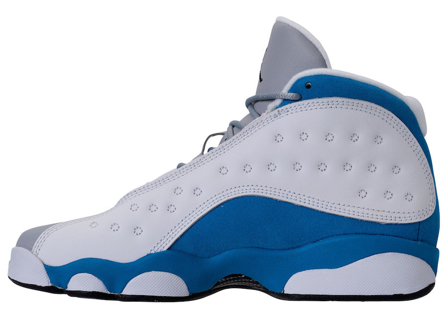 This Air Jordan 13 comes dressed in a White, Italy Blue, Wolf Grey and Black color combination. White is used across the leather upper while Italy Blue is spotted on the suede overlay, midsole and around the heel. Other details includes Wolf Grey on the toe box while accents of Black completes the look.